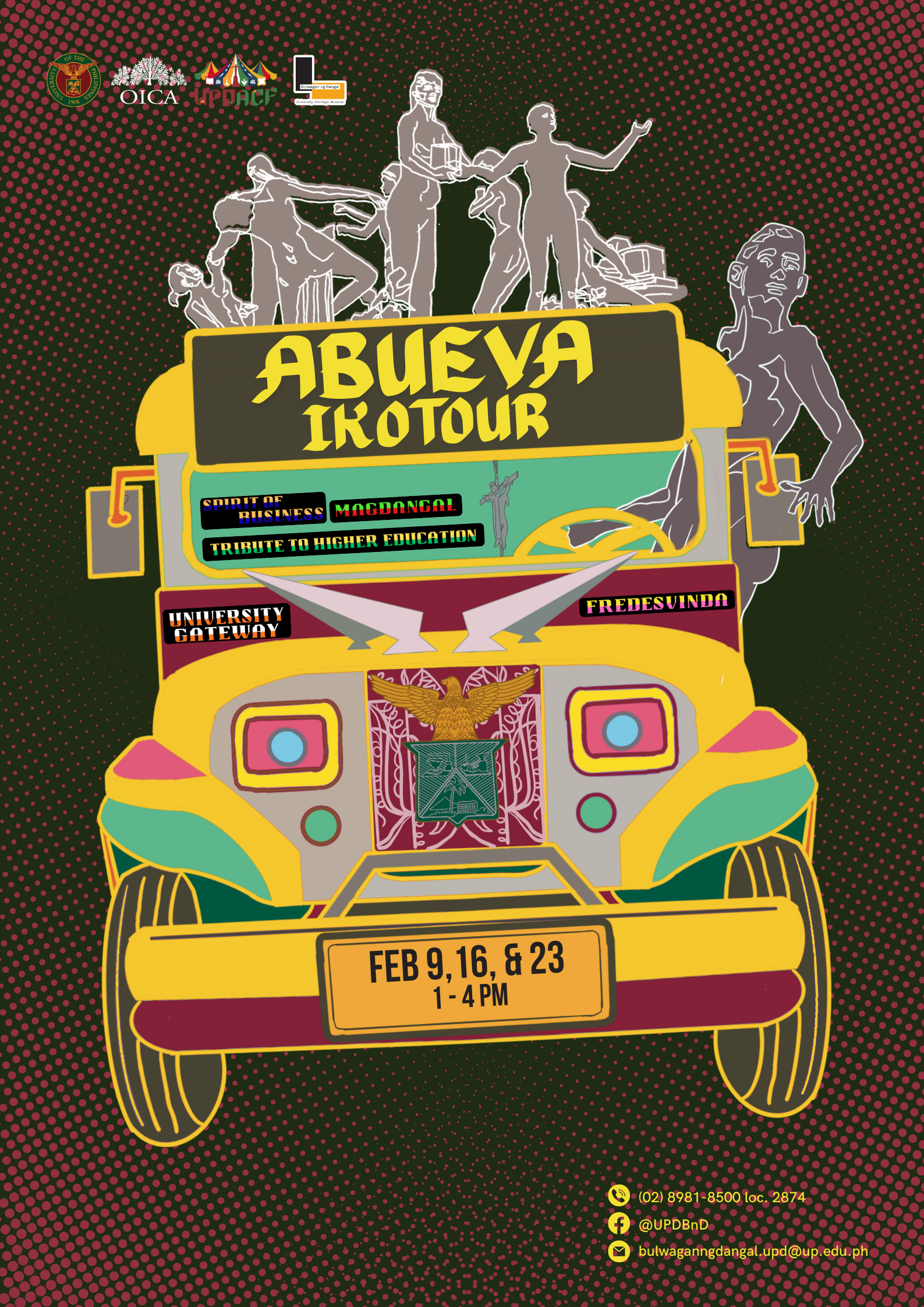The Bulwagan ng Dangal University Heritage Museum presents ๐๐๐๐๐๐ ๐๐๐๐๐๐๐: ๐๐ก๐จ๐ฆ ๐๐ซ๐ญ ๐๐ก๐จ๐ฎ๐ฅ๐ ๐๐๐ซ๐ฏ๐, a roving survey of Napoleon V. Abuevaโs public art in UP Diliman. The walking and riding tour utilizes the ๐๐ ๐๐ค๐จ๐ญ ๐ฃ๐๐๐ฉ๐ง๐๐ฒ, a campus icon since the Universityโs transfer to Diliman in 1949. ๐๐๐ฉ๐จ๐ฅ๐๐จ๐ง ๐. ๐๐๐ฎ๐๐ฏ๐ (1930โ2018), the youngest recipient of […]
